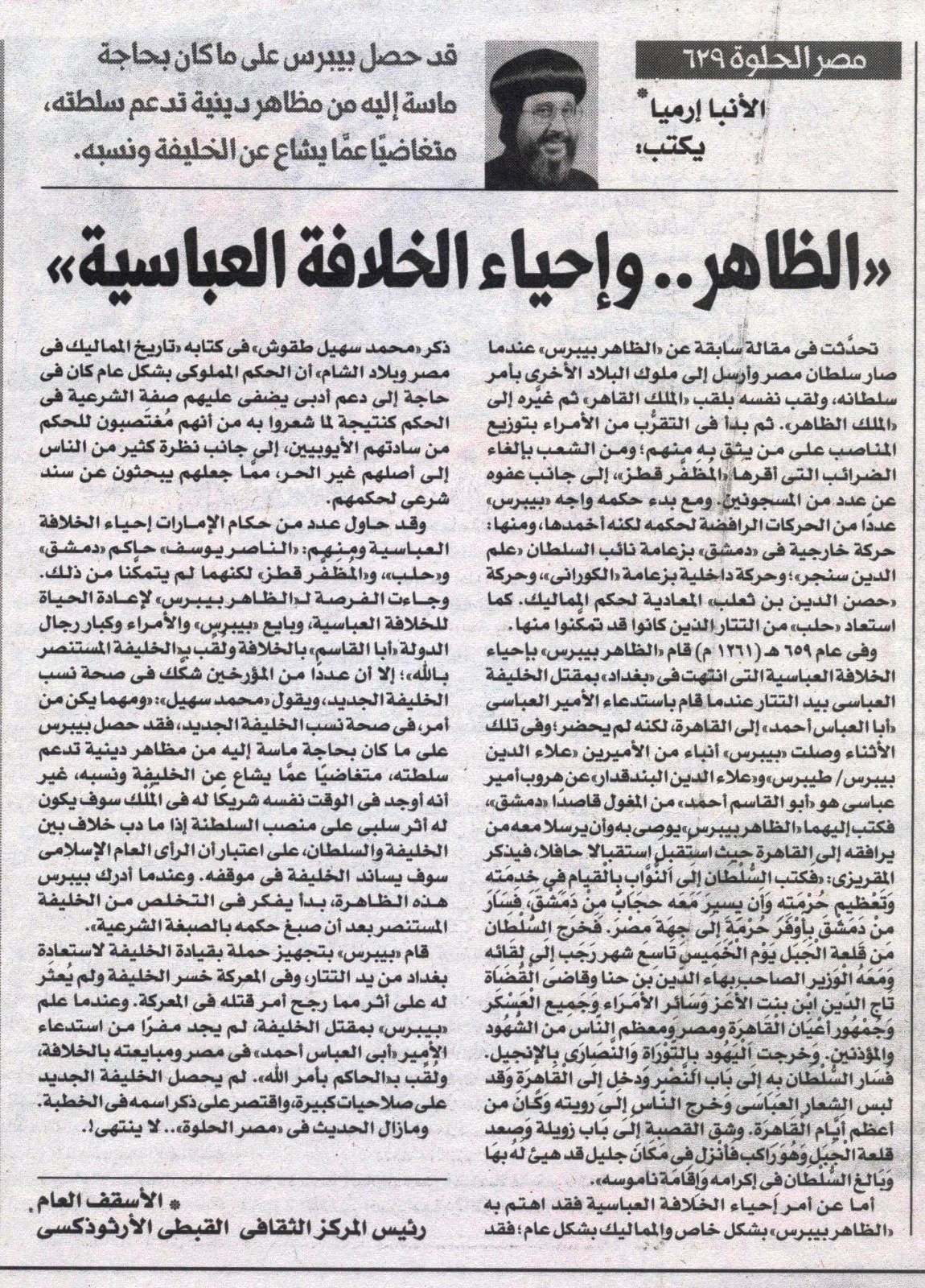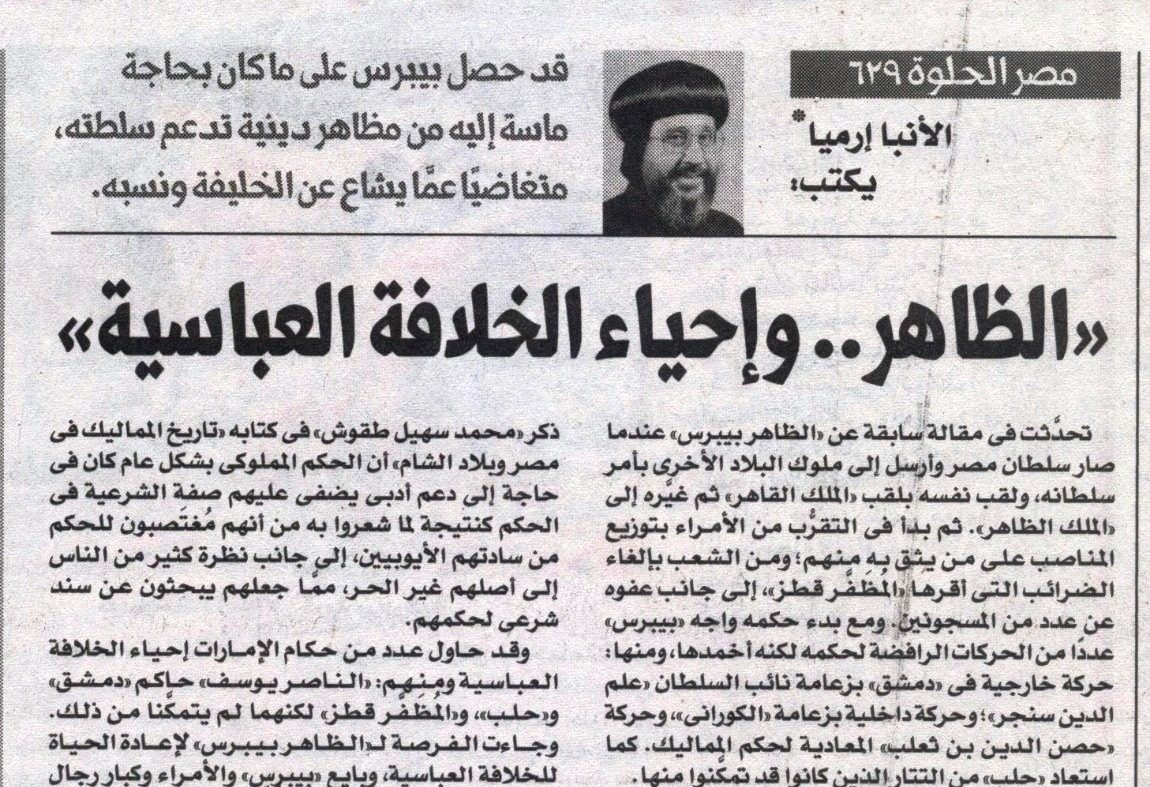 أما عن أمر إحياء الخلافة العباسية فقد اهتم به “الظاهر بيبرس” بشكل خاص والمماليك بشكل عام؛ فقد ذكر “محمد سهيل طقوش” في كتابه “تاريخ المماليك في مصر وبلاد الشام” أن الحكم المملوكي بشكل عام كان في حاجة إلى دعم أدبي يضفي عليهم صفة الشرعية في الحكم كنتيجة لما شعروا به من أنهم مُغتَصبين للحكم من سادتهم الأيوبيين، إلى جانب نظرة كثير من الناس إلى أصلهم غير الحر، ممَّا جعلهم يبحثون عن سند شرعي لحكمهم.