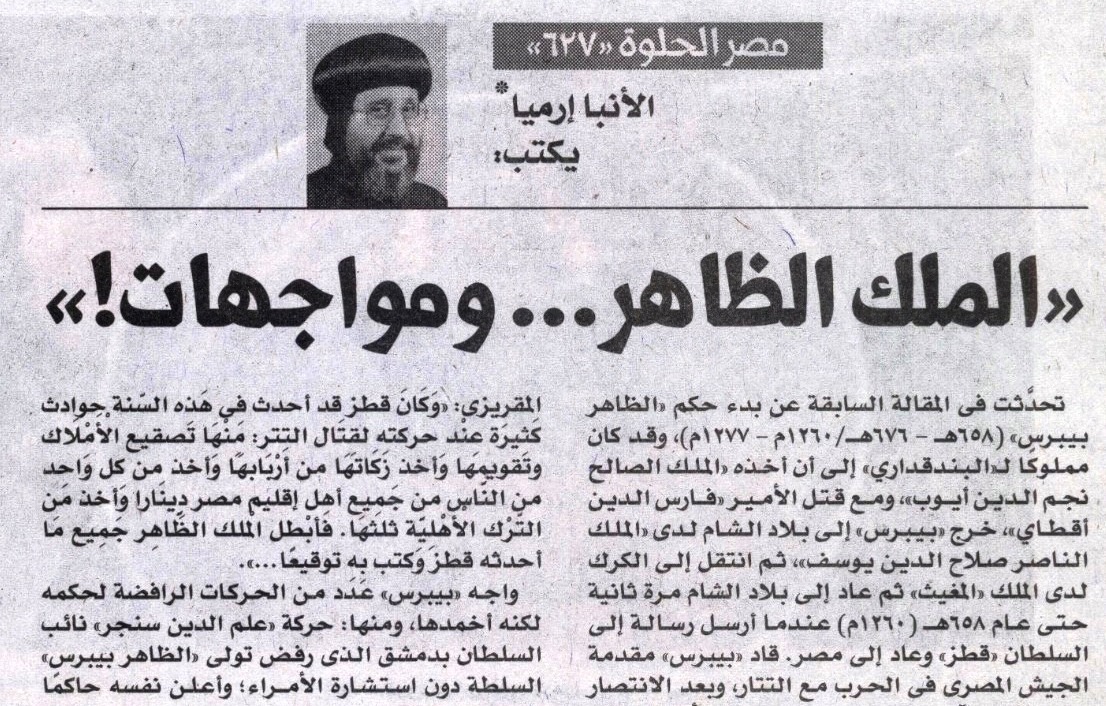 تحدَّثت في المقالة السابقة عن بدء حكم “الظاهر بيبرس” (658هـ -676هـ/1260م -1277م)، وقد كان مملوكًا لـ”البندقداري” إلى أن أخذه “الملك الصالح نجم الدين أيوب”، ومع قتل الأمير “فارس الدين أقطاي”، خرج “بيبرس” إلى بلاد الشام لدى “الملك الناصر صلاح الدين يوسف”، ثم انتقل إلى الكرك لدى الملك “المغيث” ثم عاد إلى بلاد الشام مرة ثانية حتى عام 658هـ (1260م) عندما أرسل رسالة إلى السلطان “قطز” وعاد إلى مصر. قاد “بيبرس” مقدمة الجيش المصري في الحرب معالتتار، وبعد الانتصار على التتار، تآمر “بيبرس” مع عدد من الأمراء لقتل “قطز”، وتم لهم الأمر.