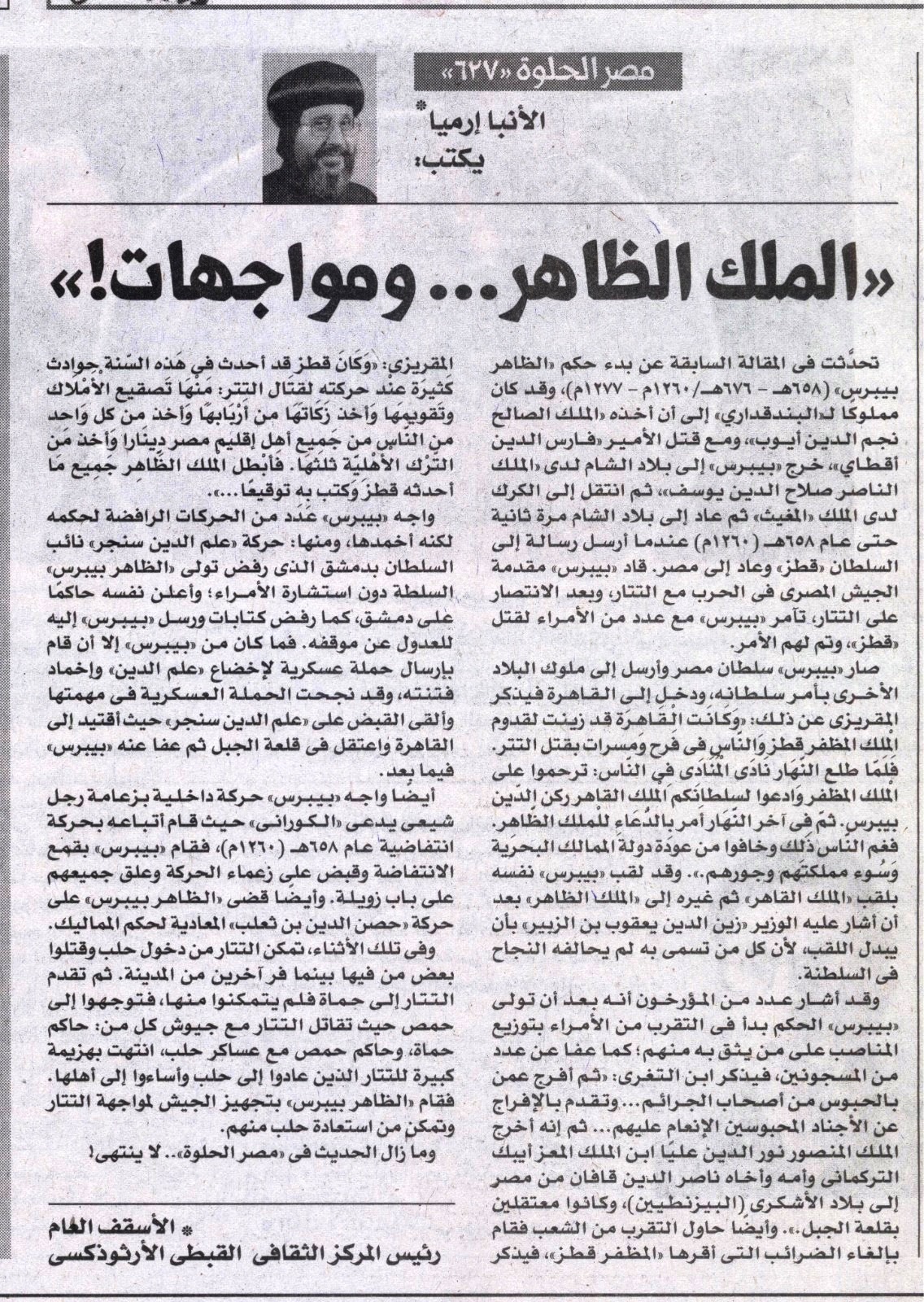 الأسقف العام رئيس المركز الثقافي القبطي الأرثوذكسي